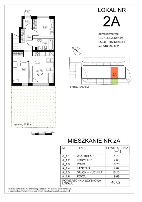 | 2A | 48,62 m² | Ogród 39,59 | Karta lokalu | Rezerwacja |