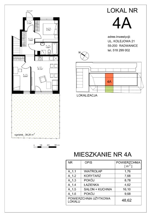 | 4A | 48,62 m² | Ogród 38,20 | Karta lokalu | Rezerwacja |