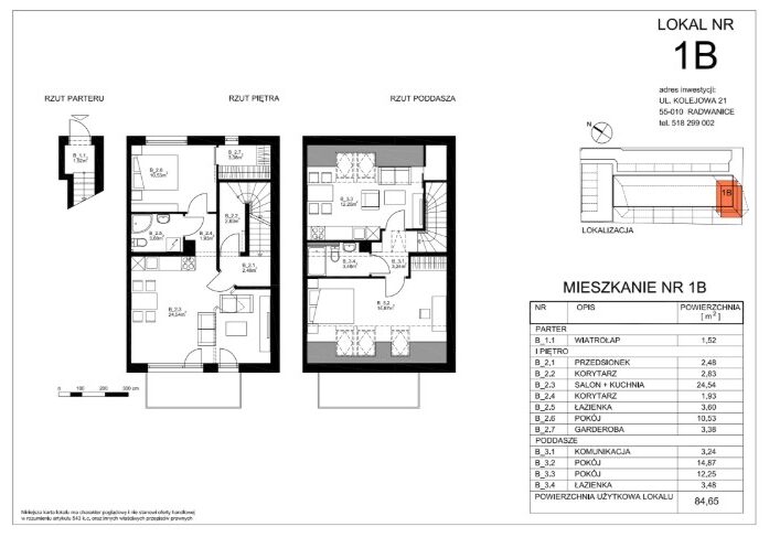 | 1B | 84,65 m² | Taras | Karta lokalu | Rezerwacja |